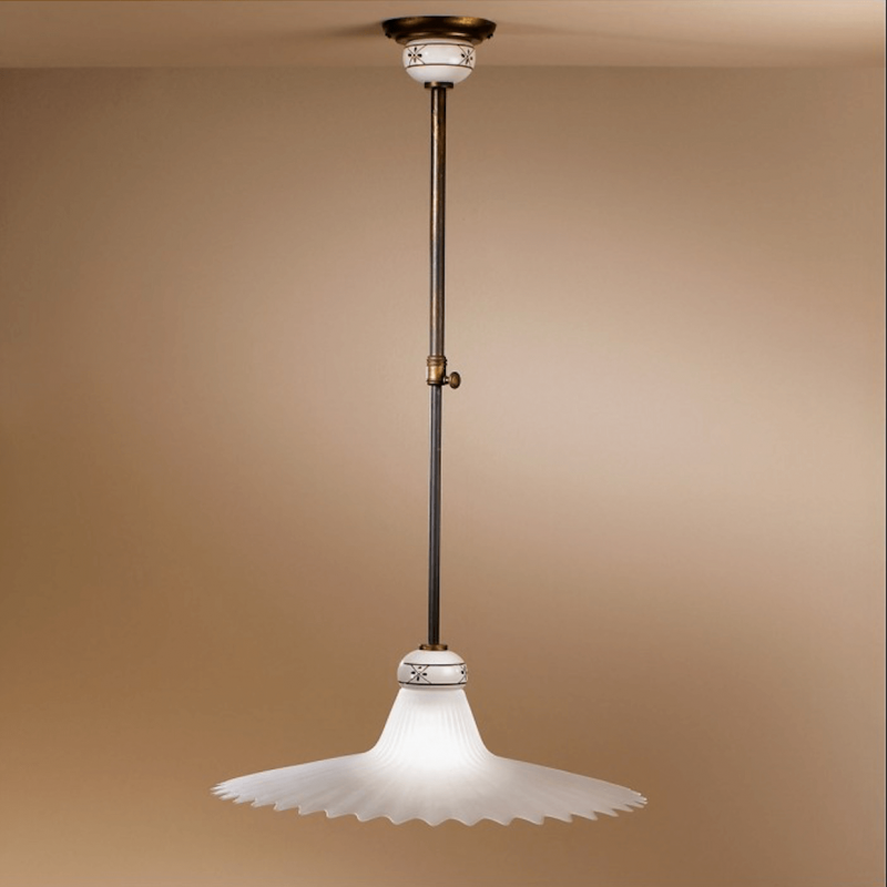 Svetilnost: 1xE27 / Halogen Max 46W Barva ogrodja: Rjava Barva stekla: Bela * Zaščita IP20 * Reguliranje višine z protiutežjo * Kompatibilno z LED žarnicami * Preveri celotno kolekcijo svetil MAMI